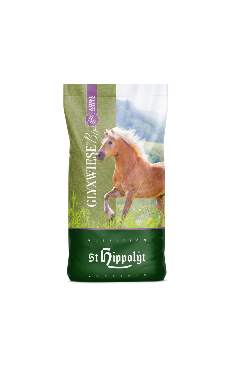 GlyxWiese ® BIO es la extensión de nuestros productos GlyxWiese ® - en calidad orgánica certificada. Los componentes bien seleccionados, como la avena verde, la alfalfa, la esparceta y la serradella, forman un pienso básico de alta calidad o un complemento rico en fibra para la alimenración basica . Debido a que no contienen cereales ni aditivos, ni tampoco diferentes mezclas de los componentes individuales, los productos GlyxWiese ® BIO son adecuados para cada tipo de caballo.