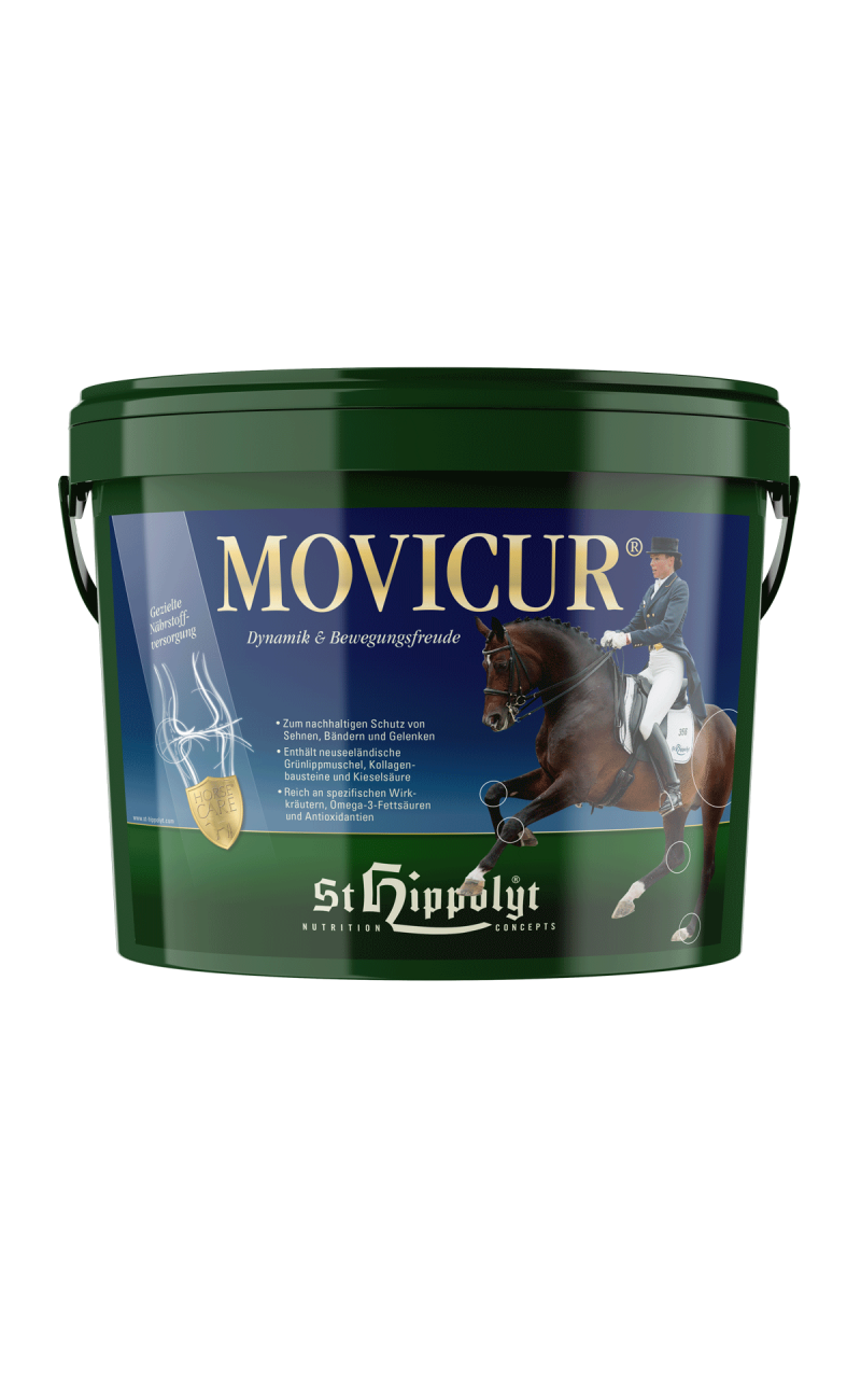 En los últimos años, se ha hecho cada vez más evidente que una deficiencia nutricional de micronutrientes funcionales es un factor importante en el desarrollo de problemas articulares y tendinosos, así como trastornos generales del movimiento. Un aporte eficaz de minerales, vitaminas antioxidantes, ácidos grasos de alta calidad y hierbas metabólicamente activas favorecen la movilidad del caballo. Movicur® , con años de eficacia probada , ofrece un suplemento de alta calidad con su completa gama de nutrientes para caballos de deporte, jóvenes y mayores.