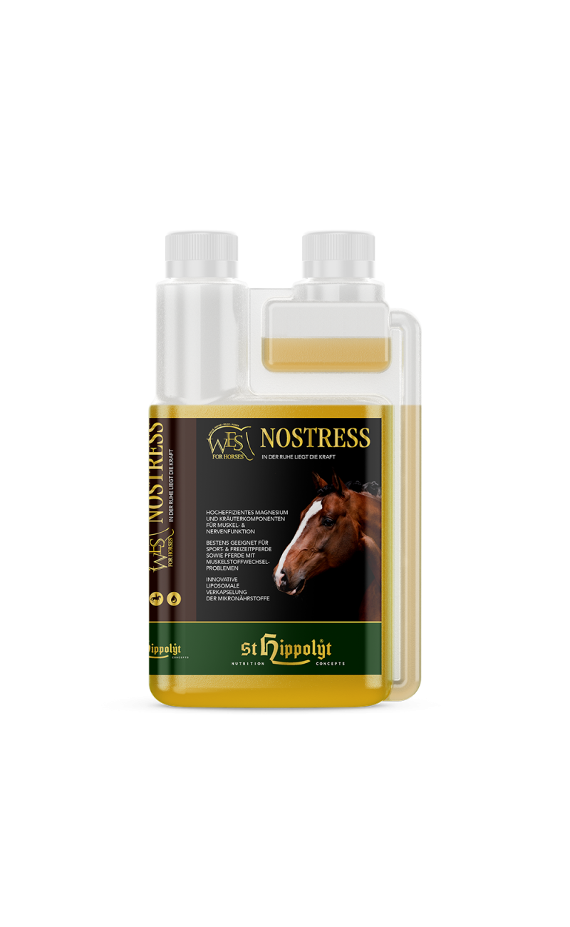 El deporte no solo requiere fuerza muscular, sino también resistencia nerviosa . Pero el caballo no solo necesita de nervios fuertes y paz interior durante la competición , tambien lo necesitara en situaciones extraordinarias y potencialmente estresantes como el transporte, el cambio de establos, cambio de manada simplemente caballos con tendencia a estar nervioso y ansiosos . A menudo faltan micronutrientes específicos para hacer frente a estas situaciones. En WES NoStress, el magnesio para la función muscular y nerviosa y las hierbas con propiedades calmantes se combinan en un verdadero "líquido antiestrés".