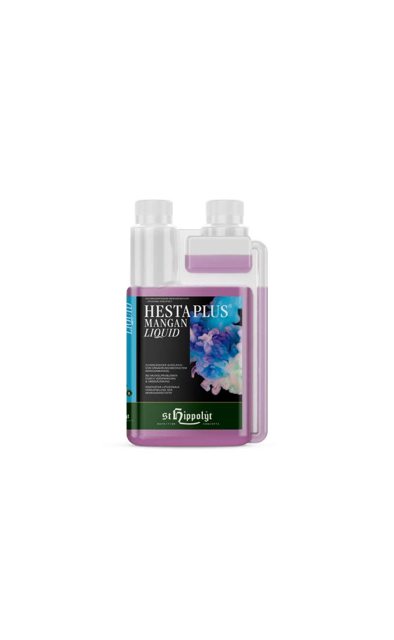 Hesta Plus ® Manganeso LIQUIDO se caracteriza por una biodisponibilidad particularmente alta y es adecuado para compensar de forma rápida y fiable una deficiencia de Manganeso (confirmada mediante un análisis de sangre).