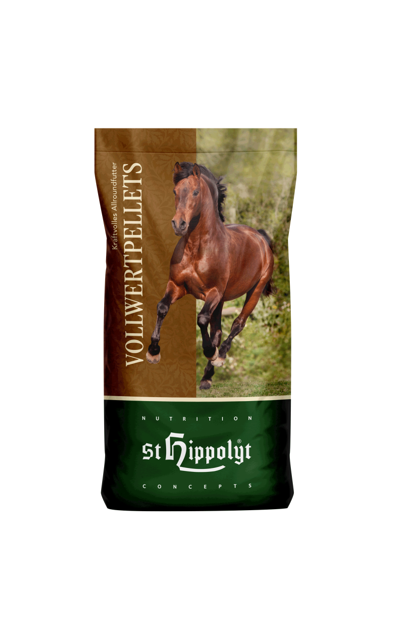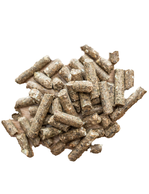 Pellet prensado en frío y rico en sustancias vitales para caballos de todas las razas y usos.